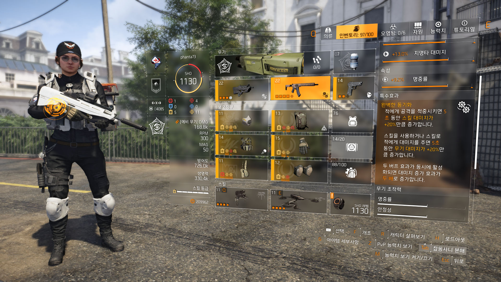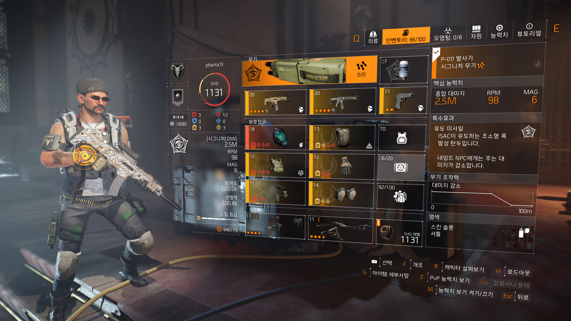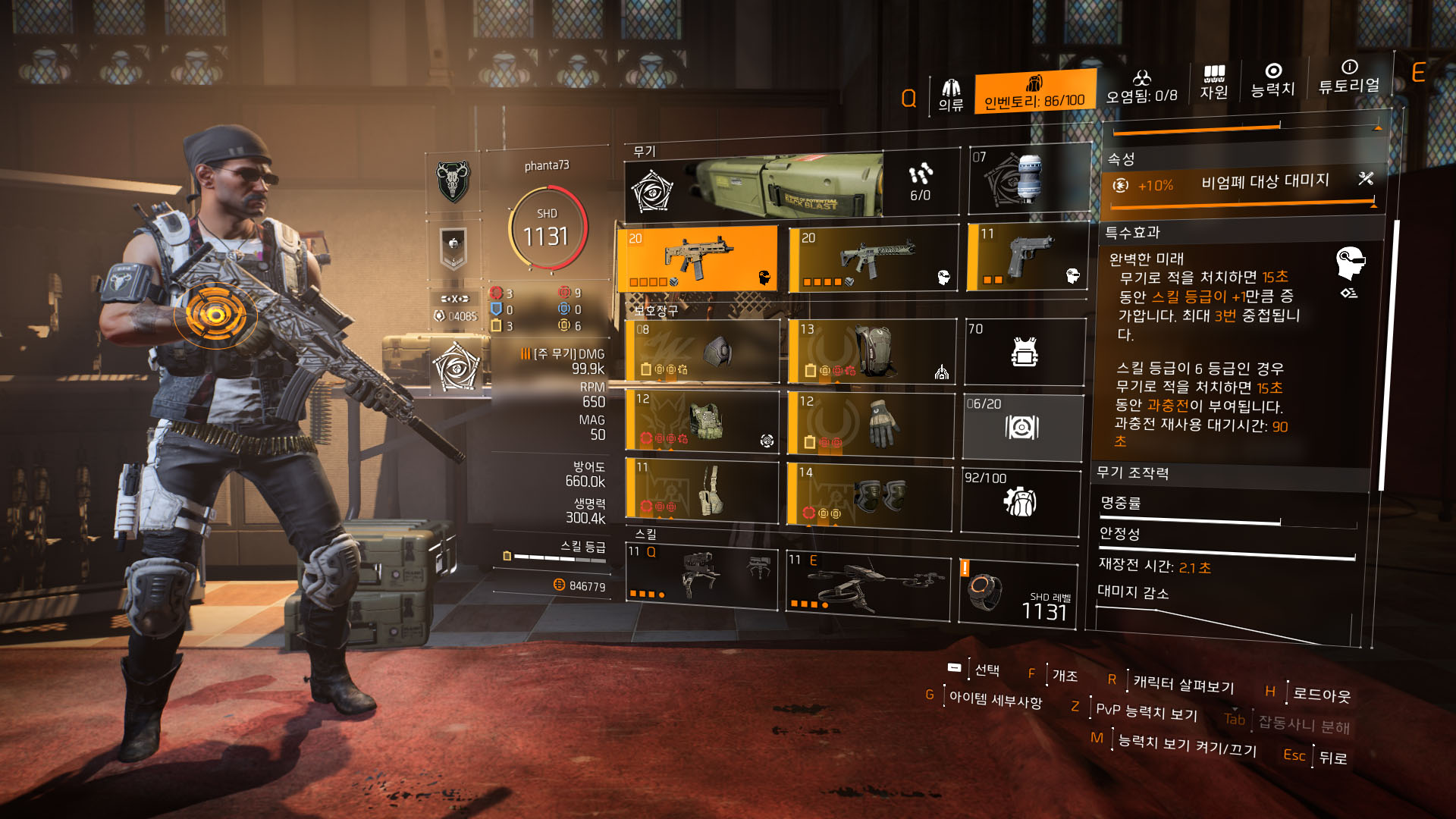 - 장비 특수 효과 : 운동 탄력, 감시병(방탄복), 완벽한 협공(백팩, 하나-U 네임드)